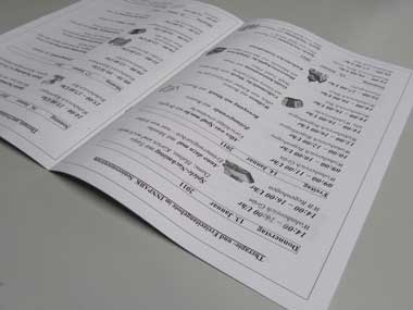 Für gefaltete Broschüren im A4 oder A5-Format mit Standard- oder Ringösenheftung. (Unsere Digitalkopierer erledigen die richtige Anordnung der Seiten automatisch. Es genügt, wenn die Vorlagen in DIN A4 der Reihe nach geliefert werden). Muster